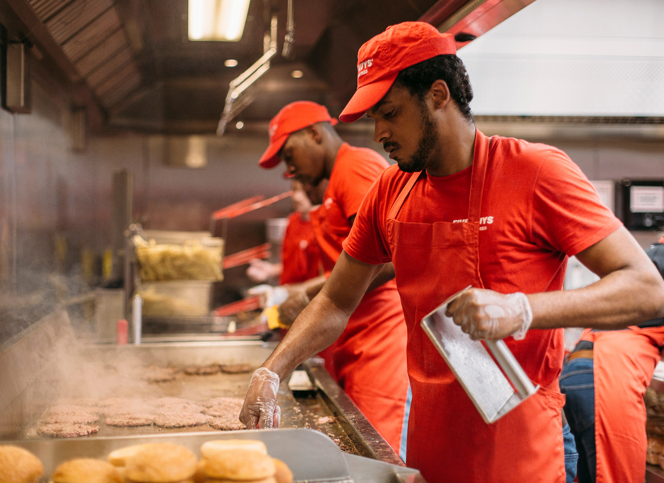 Behind the scenes, we’re hyper-focused on every aspect of your meal. Each step of the process is intentional—right down to the way we put your food in the bag. At Five Guys, the burgers and fries may be simple, but the care that goes into it is everything.